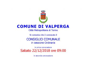 SABATO 22 DICEMBRE 2018 ORE 09,00 E' CONVOCATO IL CONSIGLIO COMUNALE IN SEDUTA PUBBLICA - SESSIONE ORDINARIA