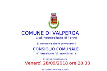 Venerdì 28/9/2018 è convocato il Consiglio Comunale in seduta pubblica.