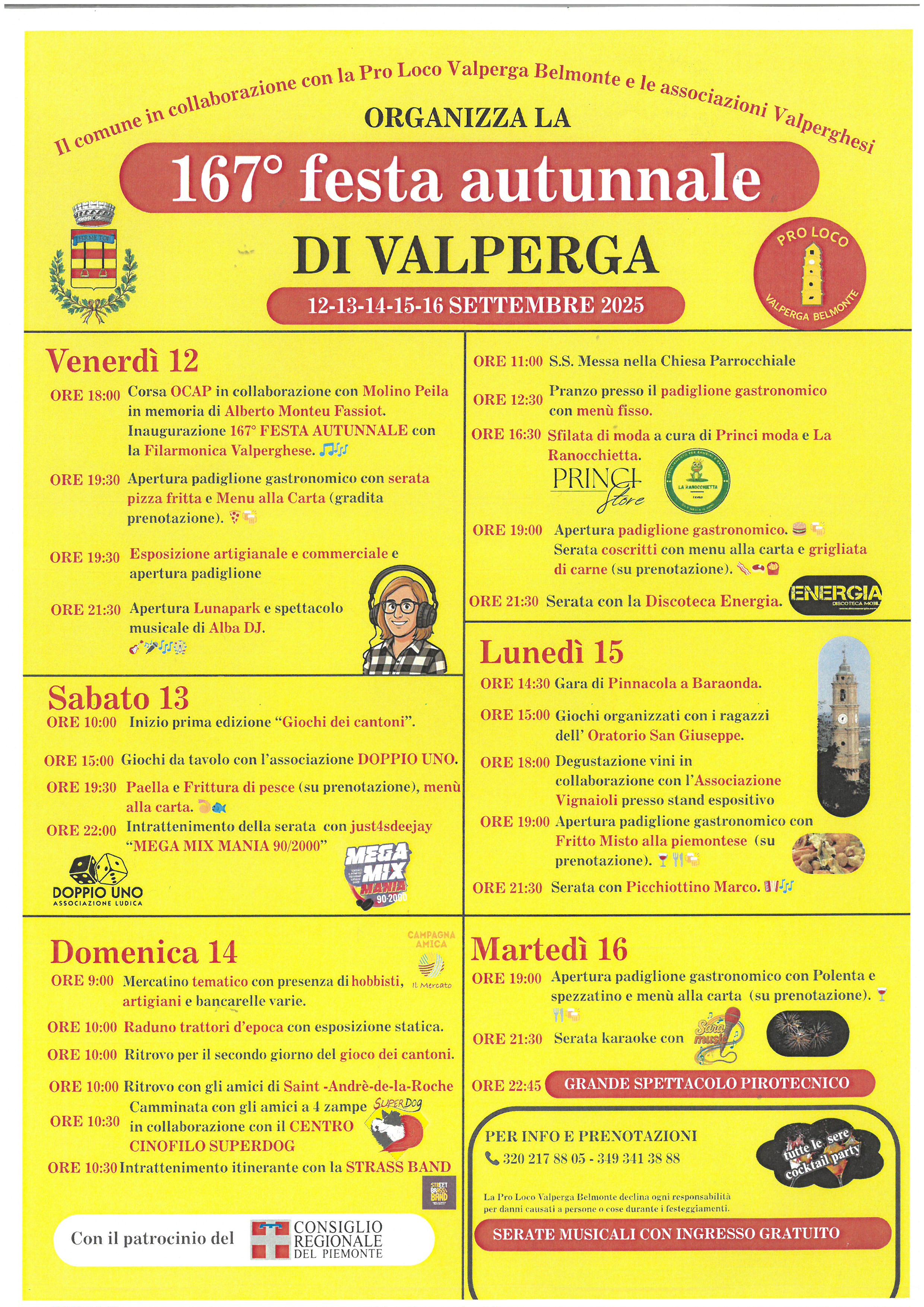 Il Comune in collaborazione con la Pro Loco Valperga Belmonte e le Associazioni Valperghesi organizza la 167° FESTA AUTUNNALE di Valperga.