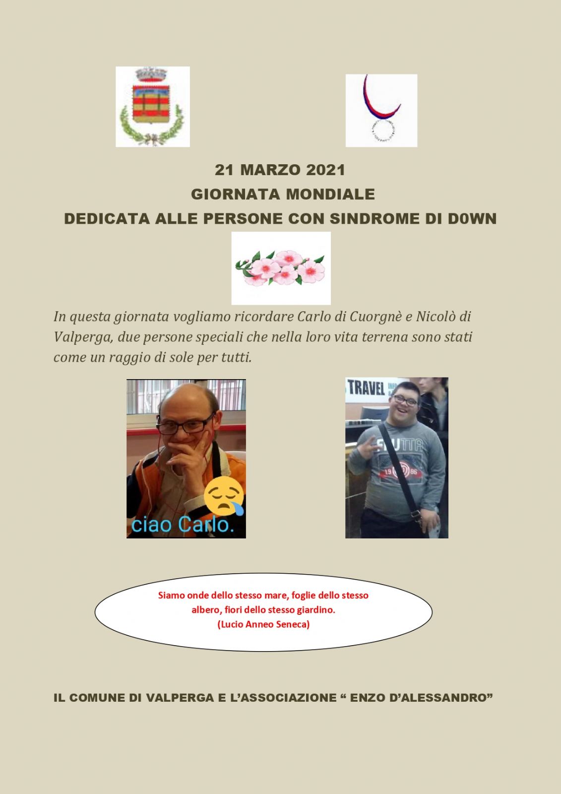 In questa giornata vogliamo ricordare Carlo di Cuorgnè e Nicolò di Valperga, due persone speciali che nella loro vita terrena sono stati come un raggio di sole per tutti.