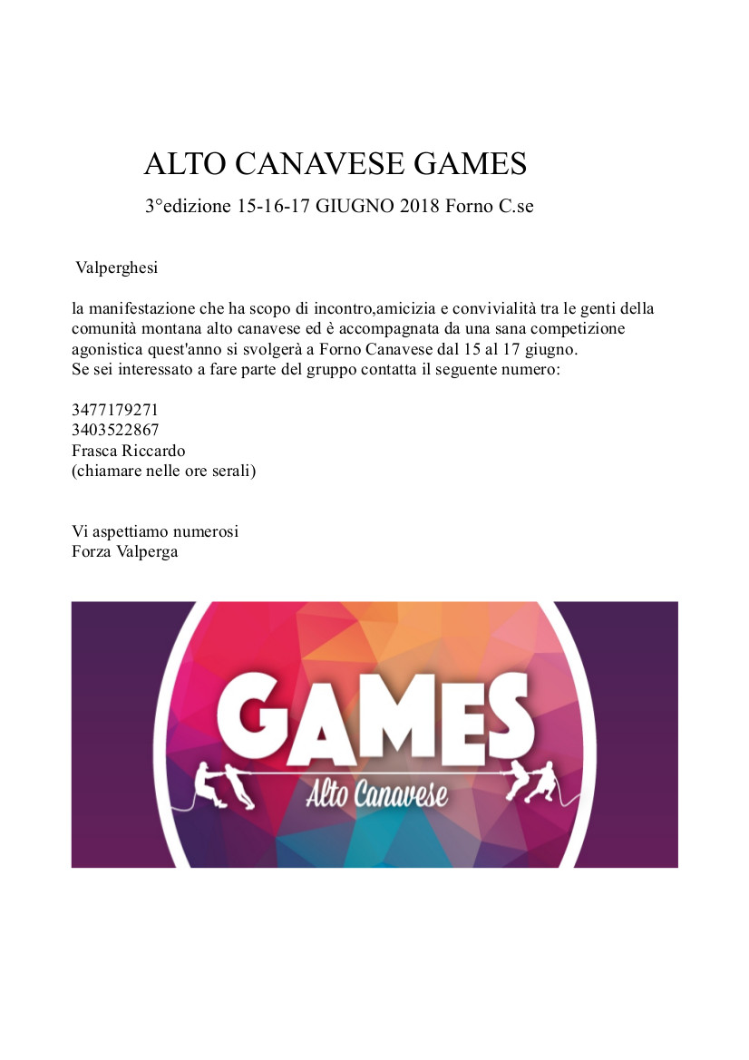 La manifestazione si propone di offrire momenti d'incontro, amicizia, convivialità tra la gente dell'ex Comunità Montana Alto Canavese nello spirito di una sana competizione.
