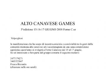 Alto Canavese Games 2018 Forno 15-16-17 giugno