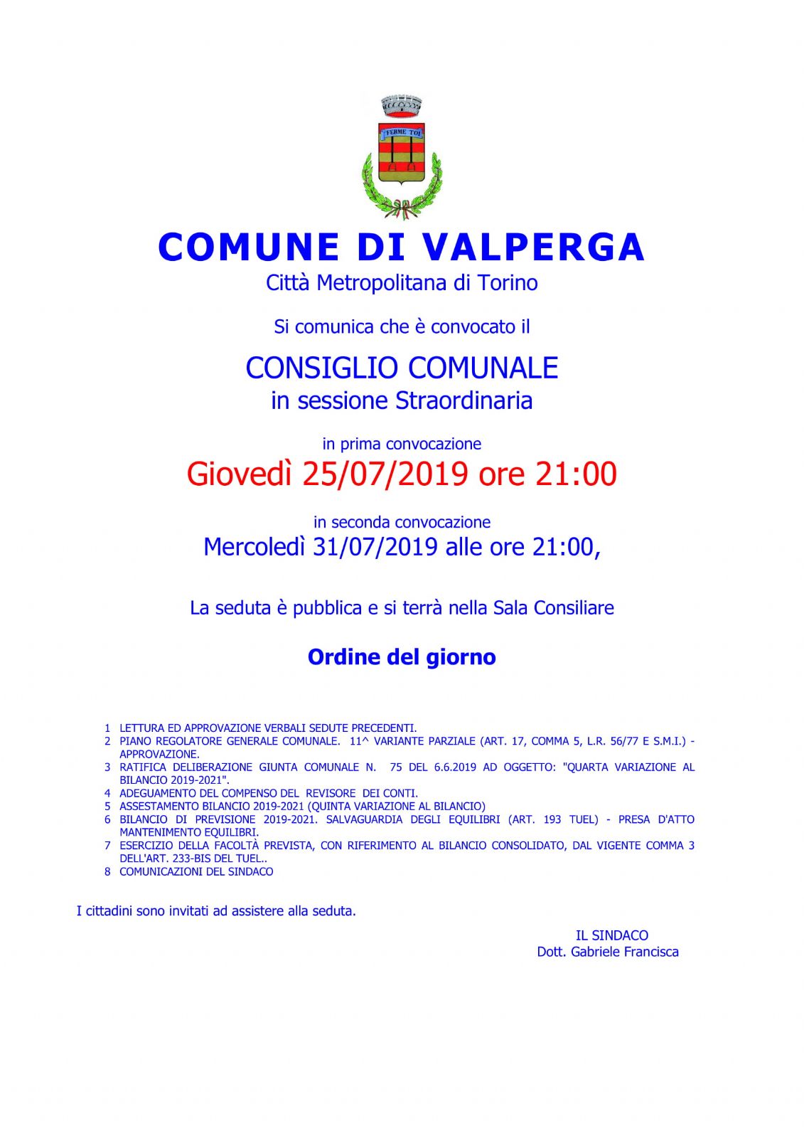 in prima convocazione Giovedì 25/07/2019 ore 21:00