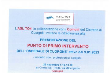 PRESENTAZIONE DEL PUNTO DI PRIMO INTERVENTO DELL'OSPEDALE DI CUORGNE' ATTIVO DAL 09/01/2023