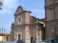 La più antica notizia della chiesa si trova in una convenzione del 1454 fra il comune di Cuorgnè ed i Conti di Valperga conservata nell'archivio comunale di Cuorgnè. La chiesa originale era costituita da due parti, una ad una sola navata con sei cappelle laterali inserite nel muro; la seconda a tre navate con l'altare maggiore in fondo. Il primo ampliamento fu del Choro nel 1710; il secondo ampliamento è stato quasi un rifacimento della chiesa. La chiesa venne portata a tre navate ed arricchita di una degna facciata su disegno di Costanzo Michela di Agliè. La chiesa pervenne alla definitiva configurazione, com'è tutt 'oggi, con un terzo ampliamento (1831): quello delle due grandi cappelle ora dette della Madonna della Liberazione e del Sacro Cuore (quest’ultima ricca di dipinti del pittore valperghese Felice Barucco). Si pervenne ad un restauro radicale con il parroco don Vincenzo Rubatto: nel 1967 si iniziò con il ripristino degli stucchi e la decorazione di volte e cupole. Tra il 1968 e 1971 si provvide al rivestimento in marmo dei pilastri e la sostituzione di alcune vetrate, nel 1973 la sistemazione delle ampie cappelle laterali, infine nel 1974 il rifacimento del pavimento in marmo su disegno del parroco stesso. L’inaugurazione avvenne il 3 marzo 1974. Notevole l’altar maggiore dalle perfette linee barocche, ideate da Costanzo Michela, il pulpito del 1765, opera dello scultore Cristoforo Serra, l’artistico portale del 1790.