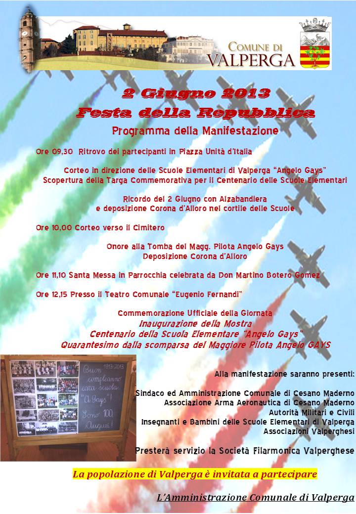 Quarantesimo della scomparsa del Maggiore Pilota Angelo Gays
